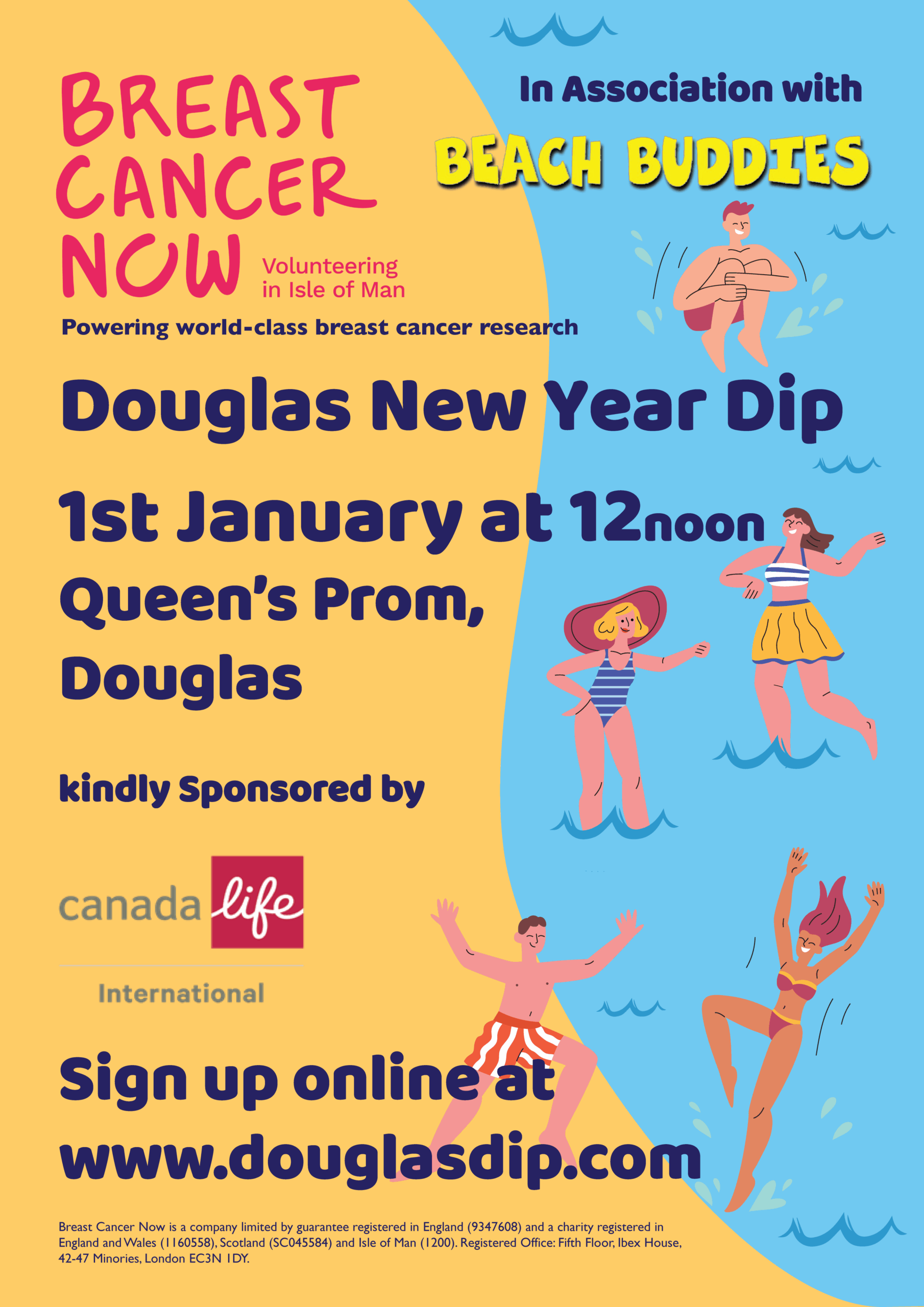 Annual sea dip on New Year's Day every year, in association with Beach Buddies, and kindly supported by Douglas Coastguard, St. John's Ambulance. Sponsored by Canada Life International.